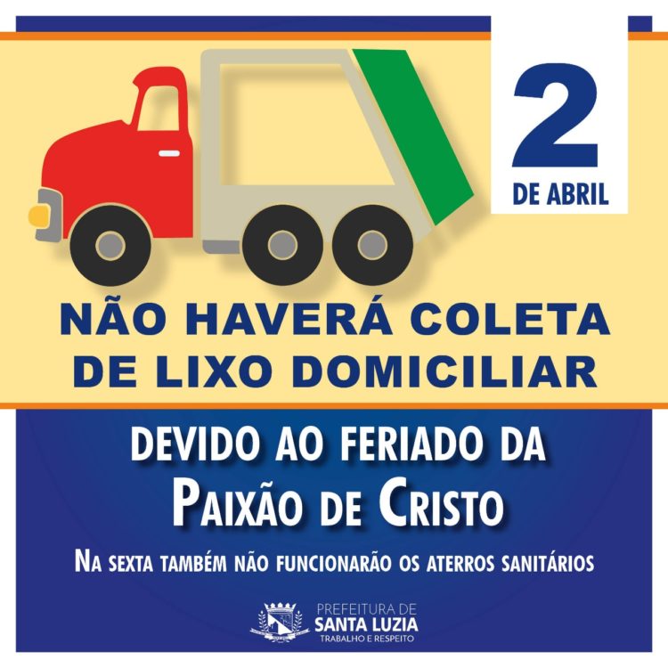 Prefeitura de Santa Luzia informa: Coleta de lixo não será realizada na sexta-feira, Paixão de Cristo