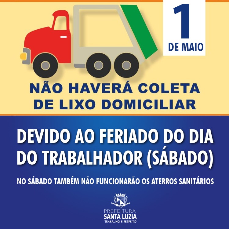 Prefeitura de Santa Luzia informa: Coleta de lixo não será realizada no sábado (1), feriado do Dia do Trabalhador