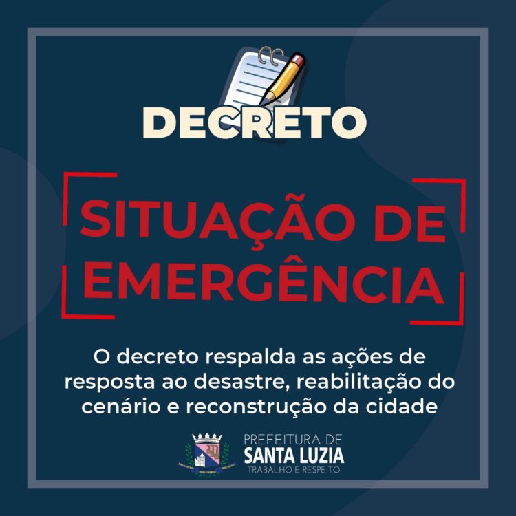 O prefeito de Santa Luzia, Delegado Christiano Xavier, assinou nesta segunda-feira (10) o decreto que declara situação de emergência na cidade, em decorrência dos danos causados no município pelas intensas chuvas dos últimos dias. O decreto respalda as ações de resposta ao desastre, reabilitação do cenário e reconstrução da cidade.