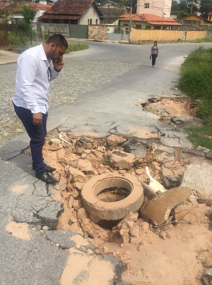 Depois, a comitiva da Prefeitura seguiu para a Av. Álvares Cabral, no bairro Adeodato, onde há pouco tempo as chuvas causaram grandes estragos, tendo, inclusive, aberto uma cratera na avenida. No local, foram realizadas obras de drenagem das águas pluviais que incluíram: aumento do diâmetro das tubulações (as de 400mm para 600mm e as de 600mm para 800mm), construção de caixa de distribuição subterrânea, instalação de meio-fio, asfaltamento e capina. “Essa rua praticamente virava um rio, e meu sobrinho teve a casa invadida pelas águas, o que lhe deu um prejuízo de mais de mil reais”, disse Fábio Emerson Ferreira, metalúrgico morador do local.