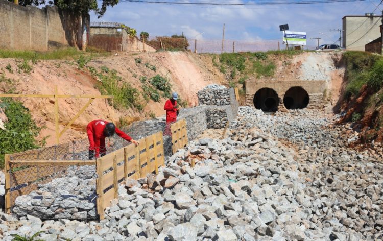 As obras de drenagem e pavimentação que irão modernizar a Av. Lucas Machado, no bairro Londrina, que teve por três semanas interrompidas por adequações contratuais, já estão passando por um momento de aceleração. A Prefeitura de Santa Luzia, através da secretaria de Obras, está no momento construindo as contenções em gabião que darão suporte às paredes do canal que corre ao longo do trecho de 445m que será pavimentado.
