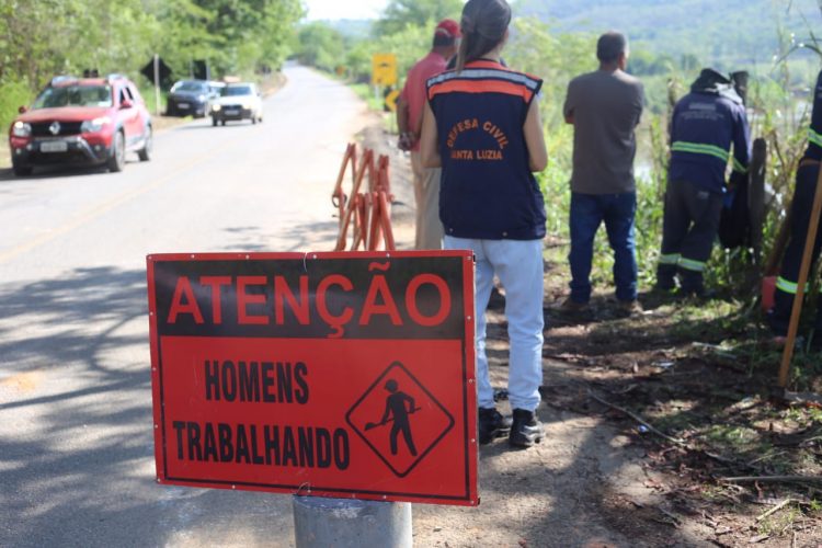 No local, está sendo feita a reposição da calha por meio de uma obra de contenção, com gabiões. A intervenção na margem do rio tem 34m de comprimento por 12m de altura. Tal providência elimina o risco de que haja um novo deslizamento, com erosão parcial da via pública.
