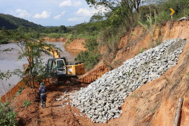 Prefeitura executa obra de contenção da margem do Rio das Velhas na MG-020