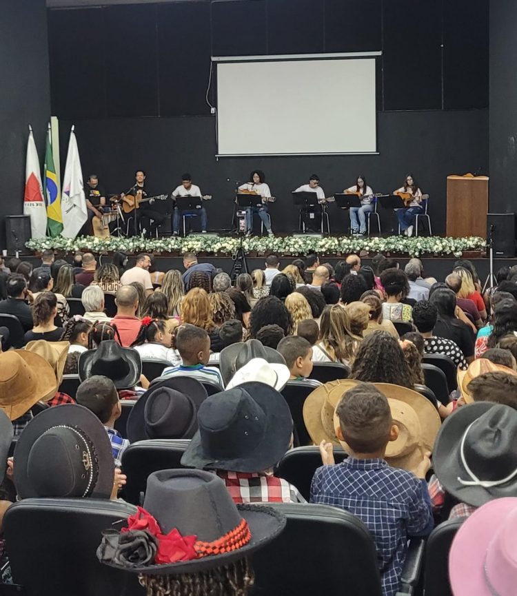 Durante a cerimônia, houve apresentações dos alunos do Projeto Arte para a Vida, acompanhados pelo professor Aramis, dos estudantes da Escola Municipal Professora Maria da Glória da Costa Veado e dos alunos do 2º período da Escola Municipal Iracema Prado da Silva.