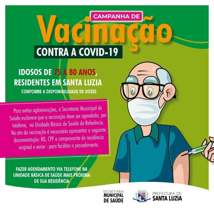A Prefeitura de Santa Luzia recebeu mais um lote de vacinas contra a Covid-19 que será utilizado para mais uma fase da vacinação no município. A imunização começou nesta terça-feira (16) e nesta fase serão vacinados os idosos de 75 a 80 anos.