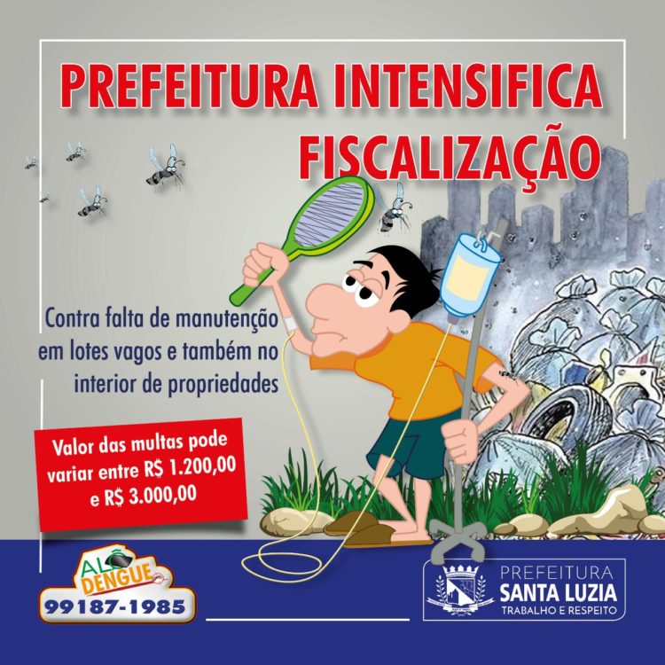 Num esforço para conter o avanço da Dengue e a organização e limpeza no município, a Prefeitura de Santa Luzia, através de uma ação conjunta das secretarias de Obras e desenvolvimento urbano, vem intensificando a fiscalização de lotes vagos que estejam sem cerca e/ou com o mato alto e falta da construção da calçada. Somente na semana de 4 a 10 de maio, 500 notificações foram lavradas. Em caso de não atendimento em tempo hábil por parte do proprietário, multas serão aplicadas cujo valor pode variar entre R$ 1.200,00 e R$ 3.000,00.