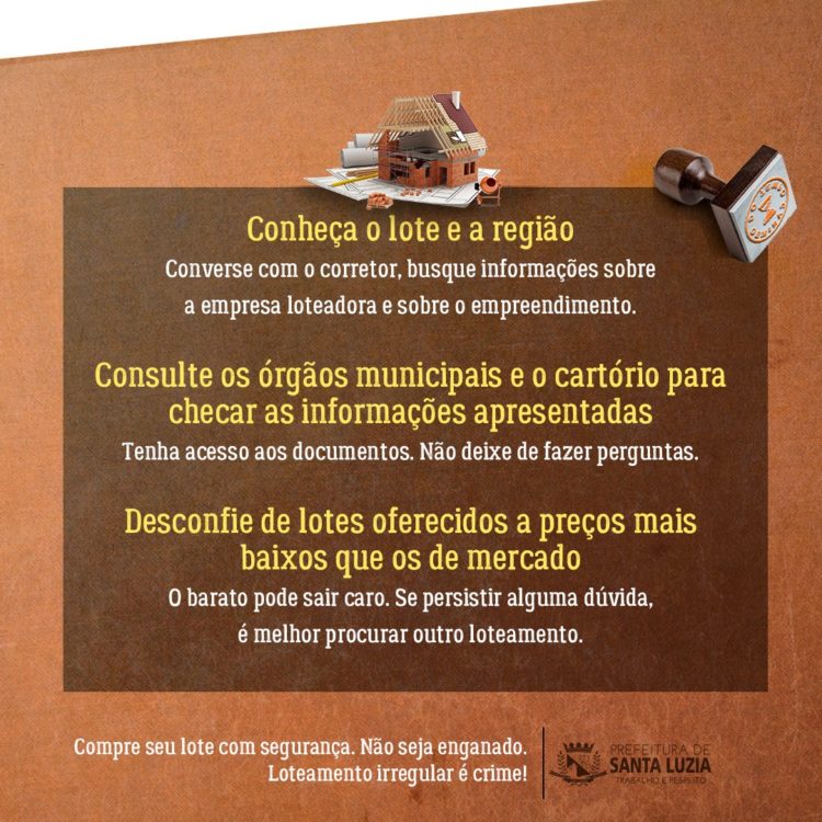 Compre seu lote com segurança! Não seja enganado! A Prefeitura informa que loteamento irregular é crime!