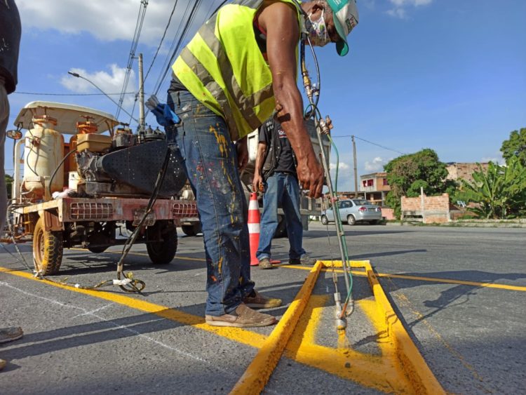 Prefeitura pinta sinalização horizontal na Av. N. Sr. do Bonfim