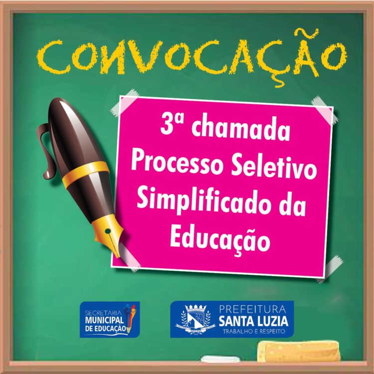 A Prefeitura de Santa Luzia, por meio da Secretaria Municipal de Educação publicou nesta sexta-feira (28) a terceira chamada para o Processo Seletivo Simplificado da pasta. Os convocados devem apresentar os documentos na referida secretaria, localizada na Avenida Oito, 50 – Carreira Comprida, entre os dias 2 e 6 de março, das 8h15 às 12h e das 13h às 16h.