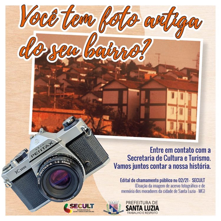 A Prefeitura de Santa Luzia, através da secretaria municipal de Cultura e Turismo, publicou na última segunda-feira (28), um chamamento público com o objetivo de elaborar um acervo fotográfico e memória dos moradores da cidade, além de material para composição de várias exposições fotográficas em diversos pontos do município. Para participar do projeto, os moradores da cidade podem fazer a doação de fotografias antigas, que serão digitalizadas por equipes técnicas. Não se trata da doação da fotografia em si, mas de captura e reprodução da imagem, bem como os direitos autorais.