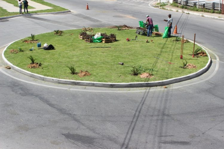 Prefeitura revitaliza, com a primeira produção própria do Horto Florestal, rotatória da Avenida Raul Teixeira da Costa Sobrinho