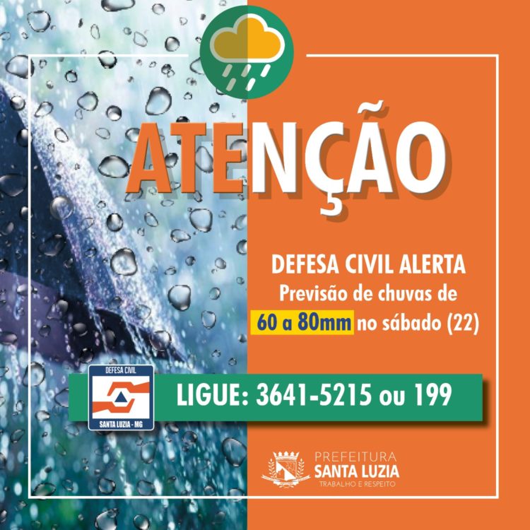 A previsão de acumulados de chuva varia entre 60mm e 80mm. Os dados estão de acordo com mapa do Igam – Instituto Mineiro de Gestão das Águas e do Simge – Sistema de Meteorologia e Recursos Hídricos de Minas Gerais.