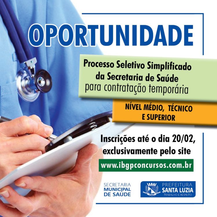 Santa Luzia. São diversos cargos de nível médio e superior.