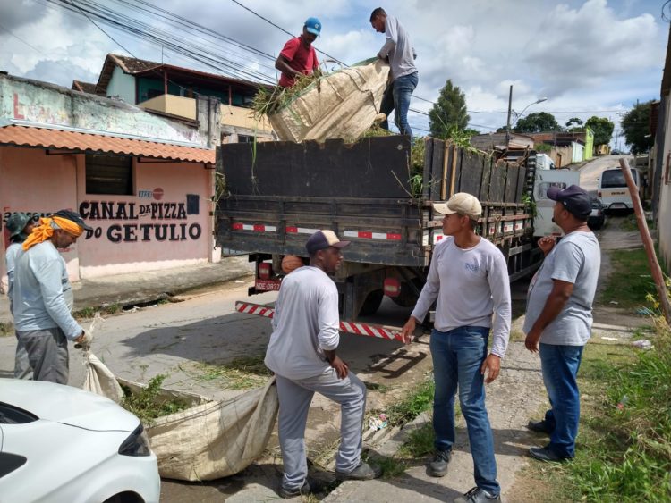 Programa de varrição e capina de vias realiza a limpeza do Canal do Cristina