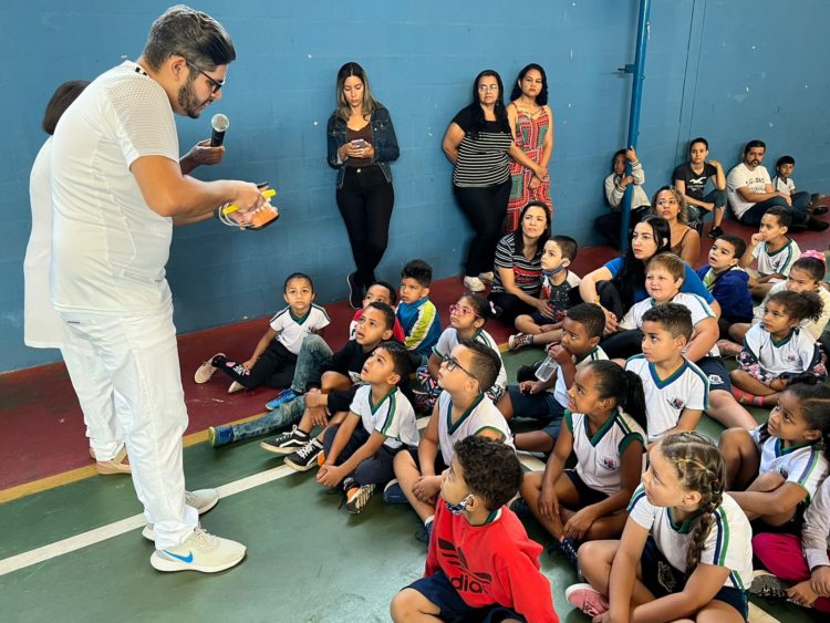 A Prefeitura, por meio da Secretaria Municipal de Saúde, realizou a entrega de 900 kits de saúde bucal para os alunos da Escola Síria Tebet, na última quinta-feira (15). Os itens foram distribuídos após a apresentação de uma palestra com a presença de um dentista e de técnicos em saúde bucal que esclareceram aos estudantes sobre a importância da escovação.