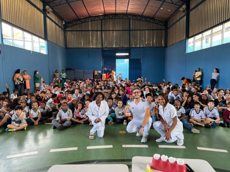 A iniciativa faz parte do Programa Saúde na Escola (PSE). “O objetivo principal do Programa é orientar as crianças no cuidado da saúde bucal, a correta escovação e limpeza dos dentes. E com isso, fazer com que elas aprendam que pequenas ações diárias geram resultados positivos importantes”, explicou a Coordenadora de Saúde Bucal, Scyomara Salomão.