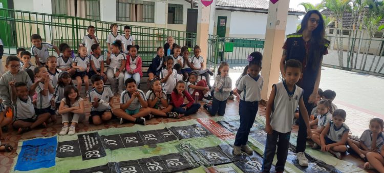 Mais uma ação da campanha Maio Amarelo foi realizada nesta quarta-feira (17). A equipe da Coordenadoria de Educação para o Trânsito, da Prefeitura de Santa Luzia, esteve na Escola Municipal Modestino Gonçalves ministrando uma palestra do projeto Cuca Legal no Trânsito. Cerca de 400 crianças participaram da atividade.