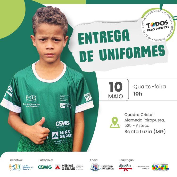 Na próxima quarta-feira (10), a partir das 10h, acontecerá o lançamento oficial do projeto “Todos pelo Esporte”, que é realizado pelo projeto social Ajudôu, com o patrocínio da Cemig e viabilizado pela Lei Federal de Incentivo, com o apoio da Prefeitura de Santa Luzia. O evento será na Quadra do Cristal (Alameda Ibirapuera, 525 – bairro Asteca).