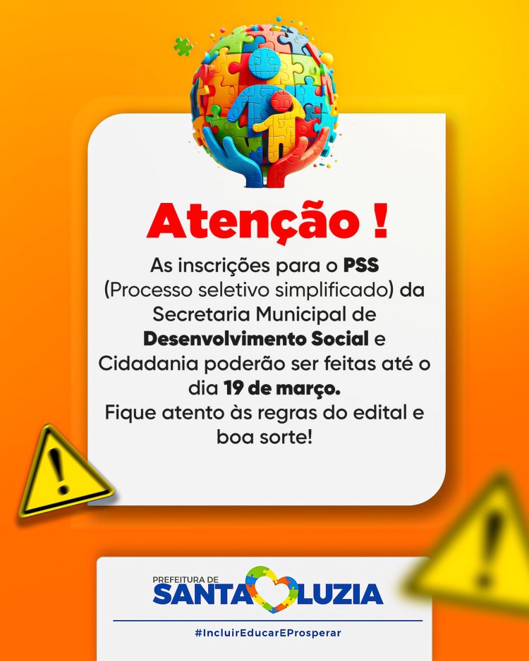 Foram prorrogadas as inscrições para o PSS – Processo Seletivo Simplificado n° 001/2025 da Secretaria Municipal de Desenvolvimento Social e Cidadania. Agora, as inscrições irão até o dia 19 de março de 2025.