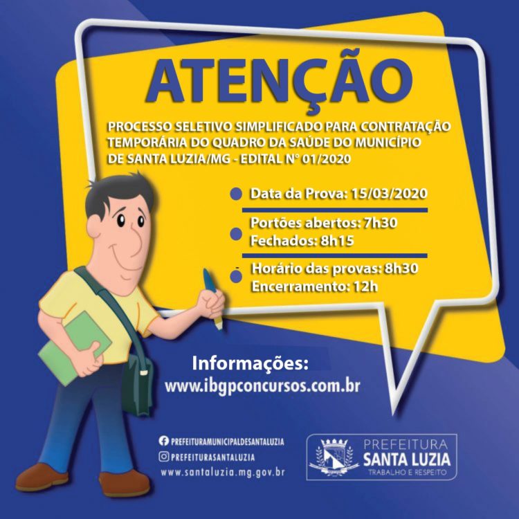 As provas para o processo seletivo da Secretaria Municipal Saúde serão realizadas no próximo domingo (15). É importante reforçar que o horário de fechamento dos portões e locais de realização das provas já estão disponíveis no site do IBGP, na área do candidato.