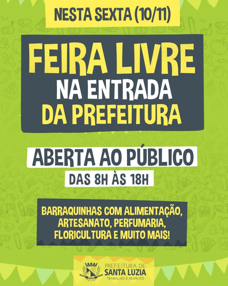 Nesta sexta-feira (10) acontece mais uma edição da Feira Livre na Prefeitura. Será das 8h às 18h, na entrada do prédio, com música ao vivo das 16h às 18h. A feira é aberta para o público em geral.