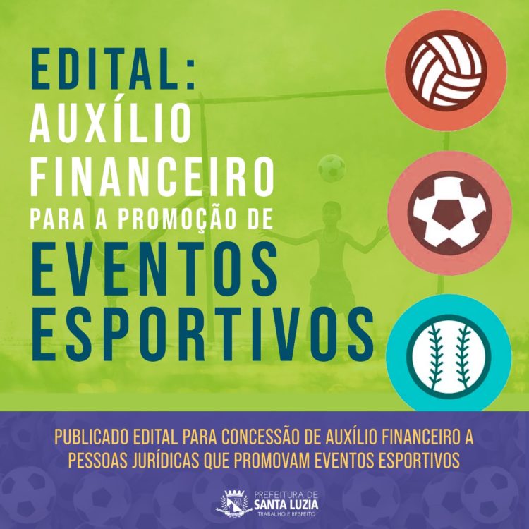 Visando fomentar o esporte, turismo e o desenvolvimento econômico no município, a Prefeitura de Santa Luzia, por meio da secretaria de Esporte e Lazer, publicou na tarde da sexta-feira (10), pelo DOM – Diário Oficial do Município, o edital 002/2021, válido por um ano, o qual estipula as normas para concessão de recursos financeiros a pessoas jurídicas que promovam eventos esportivos no município no período entre 15 de setembro de 2021 e 15 de setembro de 2022. No total, o valor oferecido é de R$ 1.500.000,00 (hum milhão e meio de reais)
