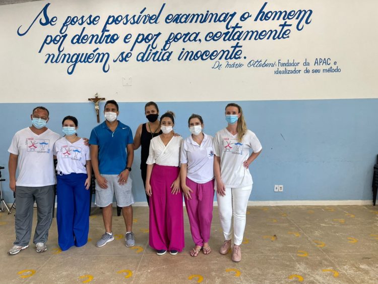 Estiveram presentes as representantes da secretaria de Saúde, as coordenadoras Thaís e Laudilene, e profissionais do NASF – Núcleo de Apoio à Saúde da Família, dentre eles o educador físico Daniel, que realizou uma sessão de atividade física com os internos, e o ACS Diogo, que é dedicado à APAC, além da gerente da UBS Frimisa, Ana Paula B. Bergmann.