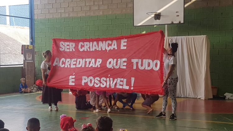 Durante a visita, os estudantes apresentaram peças teatrais criadas pelos professores do projeto abordando os temas violência, racismo, trabalho infantil e atividades de dança.