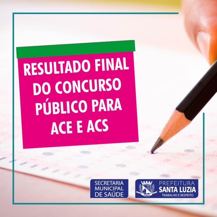Foi publicado na quarta-feira (29), o resultado final do Concurso Público para os cargos de Agente Comunitário de Saúde (ACS) e Agente de Combate a Endemias (ACE), da Prefeitura de Santa Luzia. A listagem pode ser conferida no site do Instituto Brasileiro de Gestão e Pesquisa (IBGP), responsável pela organização do certame.