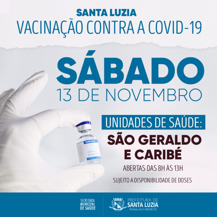 Em Santa Luzia, atualmente estão recebendo a primeira dose do imunizante, pessoas que tenham 12 anos ou mais. A segunda dose segue sendo aplicada naqueles que já alcançaram a data determinada, sendo que a aplicação do imunizante do laboratório da Pfizer foi antecipada para todos que já completaram 8 semanas desde a aplicação da primeira. A dose de reforço está sendo ofertada para pessoas acima de 60 anos e profissionais de saúde que já receberam a segunda dose há 5 meses ou mais, além de pessoas imunossuprimidas. Infelizmente, neste sábado não haverá disponibilidade da vacina da Astrazeneca, última remessa foi insuficiente.