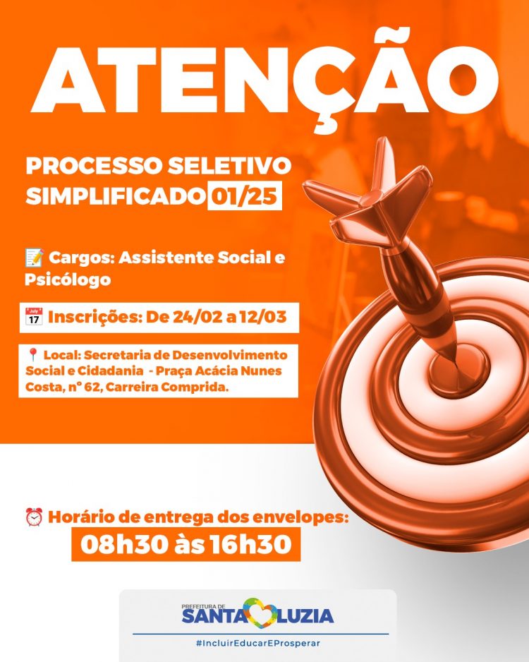 A íntegra do edital pode ser consultada no Diário Oficial do Município, por meio do link: https://dom.santaluzia.mg.gov.br/?p=33777