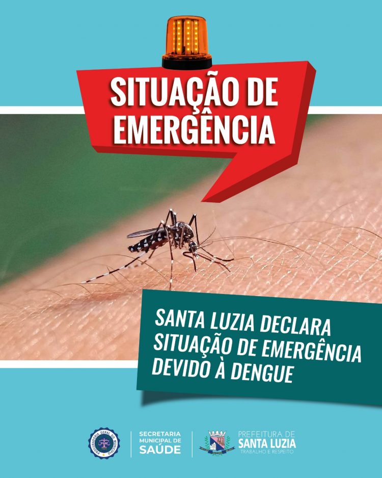 Por meio do Decreto 4289/24, de 6 de janeiro de 2024, válido por 6 meses, a Prefeitura de Santa Luzia declara situação de emergência em saúde pública em todo o território do município. A razão é o cenário epidemiológico, o qual no momento apresenta um surto de doenças virais: dengue, zika e chikungunya.