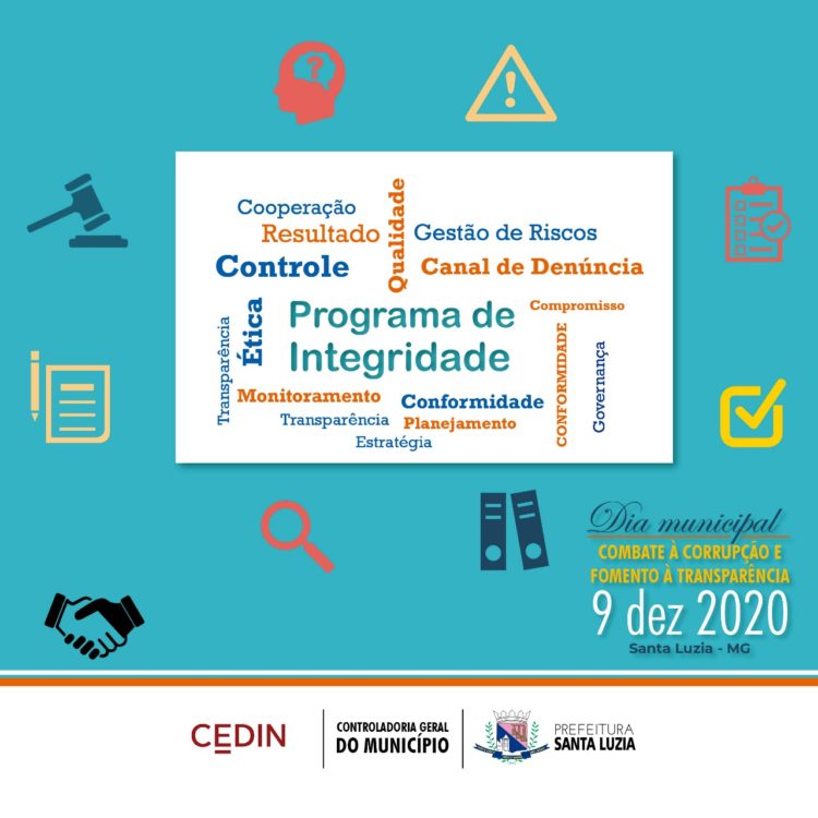 O dia 09 de dezembro é lembrado internacionalmente como Dia de Combate à Corrupção. A Lei n° 4.061, de 08 de março de 2019, instituiu a data no calendário oficial do município de Santa Luzia, o ‘’Dia Municipal de Combate à Corrupção e Fomento à Transparência’’.