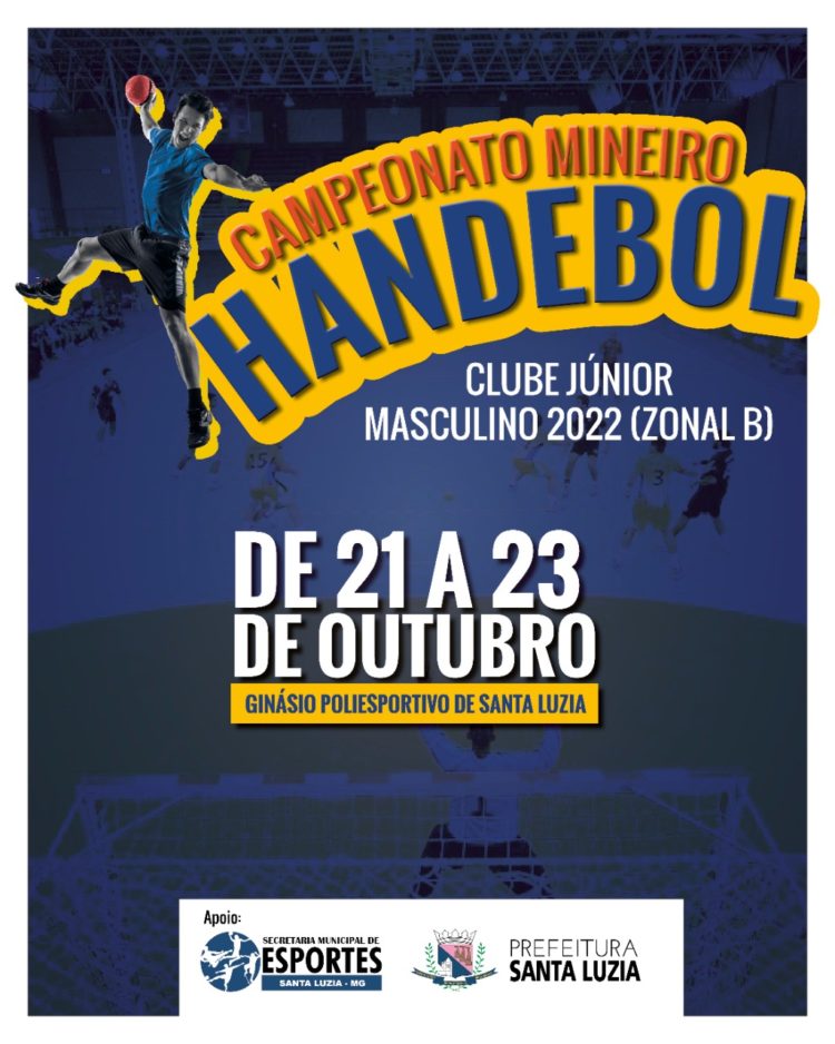 Nos dias 21, 22 e 23 de outubro, a cidade de Santa Luzia sediará pela primeira vez, a fase zonal B do Campeonato Mineiro de Handebol Clubes Júnior Masculino 2022, no Ginásio Poliesportivo (rua Baldim, s/n, bairro Rio das Velhas). O jogo de abertura será na sexta-feira (21), a partir das 19h, seguido da segunda partida da noite, às 20h30. No sábado (22), os jogos serão às 14h e 15h30 e no domingo (23), último dia, os jogos acontecem às 8h30 e às 10h.