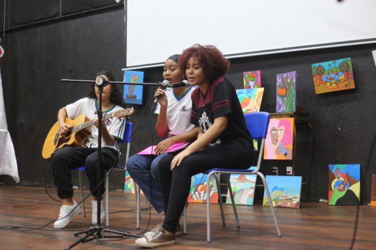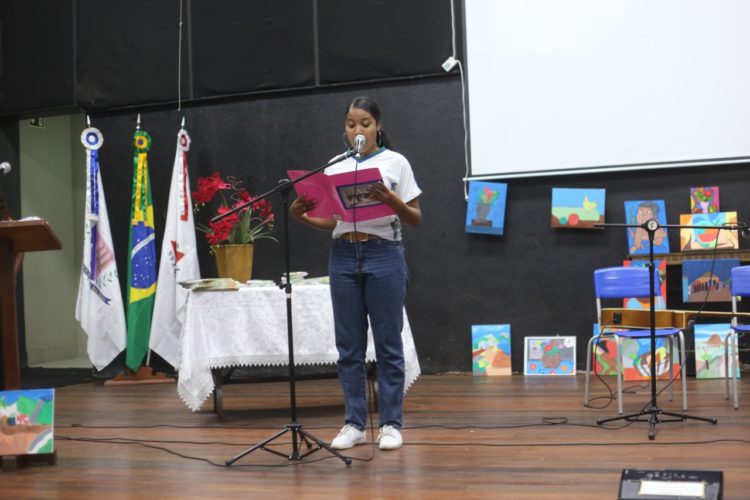 Julia Emanuele Silva é aluna do 9º ano da Escola Municipal Dulce Viana de Assis Moreira. Amante da leitura e da escrita, ela aprovou a experiência. “Com o trabalho aprendi a conviver mais com as pessoas, a desenvolver melhor meu texto e minha leitura. Adorei fazer esse trabalho e faria várias outras vezes”, disse. Ao lado dos colegas de escola, Julia apresentou o Sarau Travessia, que contou com apresentações musicais e leitura de poesias escritas pelos próprios alunos.