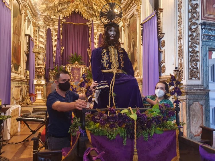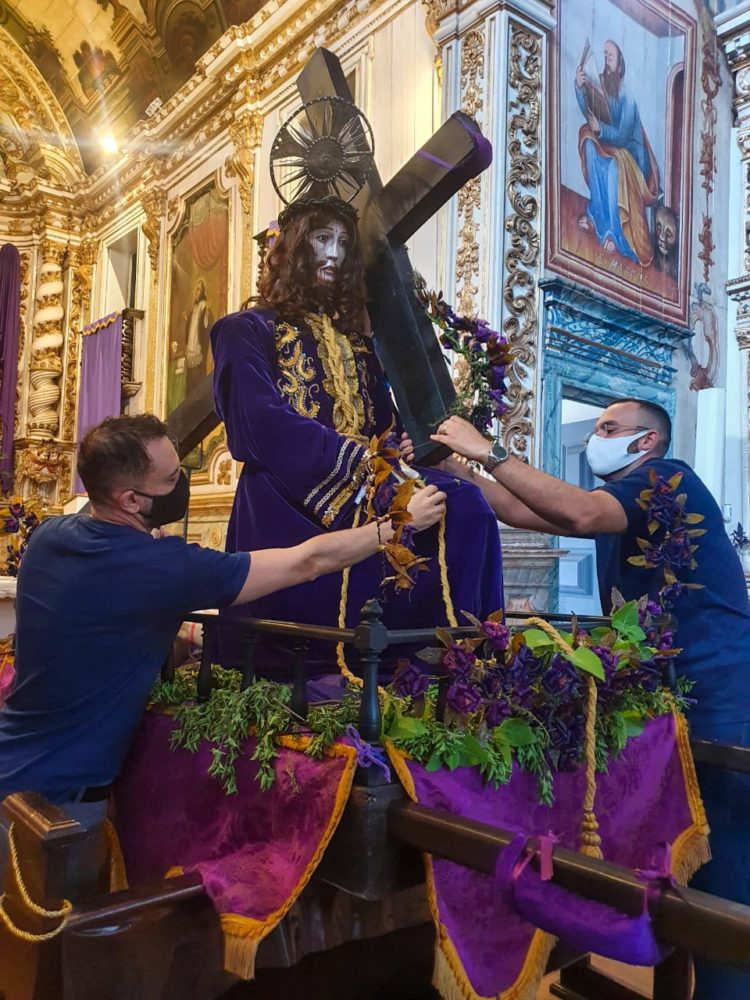 Em conformidade com os protocolos sanitários anticovid, foi realizada a tradicional vestimenta da imagem de roca da Nossa Senhora das Dores do santuário arquidiocesano de Santa Luzia, que contou com a participação dos secretários e do superintendente de Cultura e Turismo de Santa Luzia, Marco Aurélio Fonseca. A imagem é do século 18 e tem tombamento municipal e estadual.