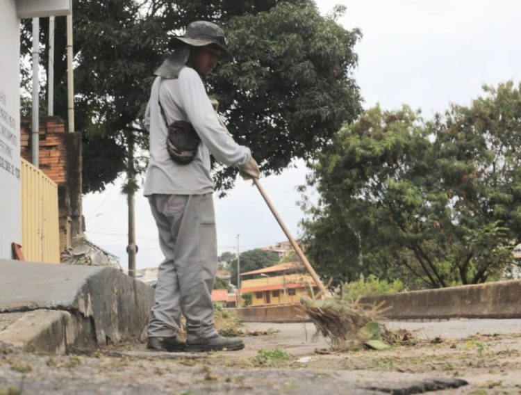 Serviços de varrição e capina de vias são realizados no canal da Avenida Senhor do Bonfim, no bairro São Benedito