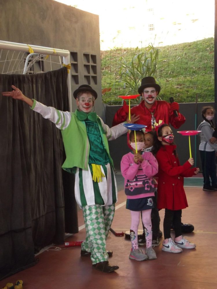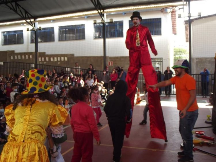 Um espetáculo circense, mais especificamente um show de palhaços gigantes denominado “Quem Quer Tirar a Sorte?”, fez a alegria da garotada, na manhã e tarde da quinta-feira (19) na quadra coberta da Escola Municipal Santa Luzia, no bairro Nossa Senhora das Graças. A apresentação foi realizada pelos atores da trupe Dino Marangoni Palhaços Gigantes, com apoio da Prefeitura de Santa Luzia, através da Secretaria Municipal de Cultura, graças a um incentivo cultural obtido por meio da Lei Aldir Blanc. “Agradecemos pela apresentação que empolgou as crianças e a equipe pedagógica”, disse a diretora da instituição, Mylene Sarah.