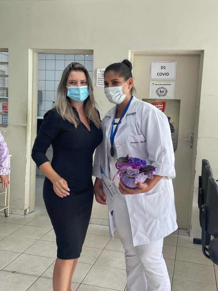 Raquel já havia recebido o apoio e reconhecimento da unidade de saúde em que trabalha, da Secretaria Municipal de Saúde e da Administração Municipal. Agradeço ao Coren-Mg pelo o carinho e respeito aos profissionais da saúde, agradeço também a equipe Caribé pelo apoio nos momentos difíceis aos pacientes e população que demonstram o quanto apoiam meu trabalho e todo carinho dispensados a mim. Agradeço também a prefeitura municipal de Santa Luzia por todo apoio”, disse Raquel.