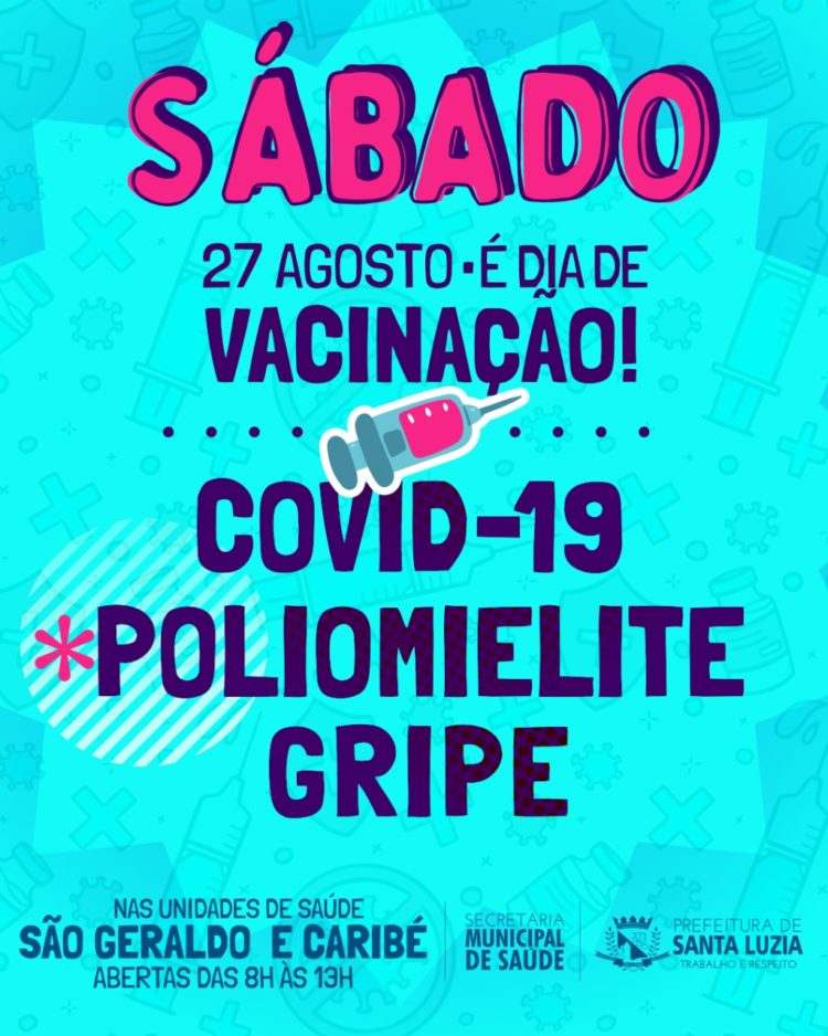 Neste sábado (27), as unidades básicas de saúde Caribé e São Geraldo ofertarão as doses das vacinas contra a gripe, covid-19 e poliomielite. Os dois postos de saúde ficam abertos das 8h às 13h e para se vacinar é necessário apresentar o cartão de vacinas.