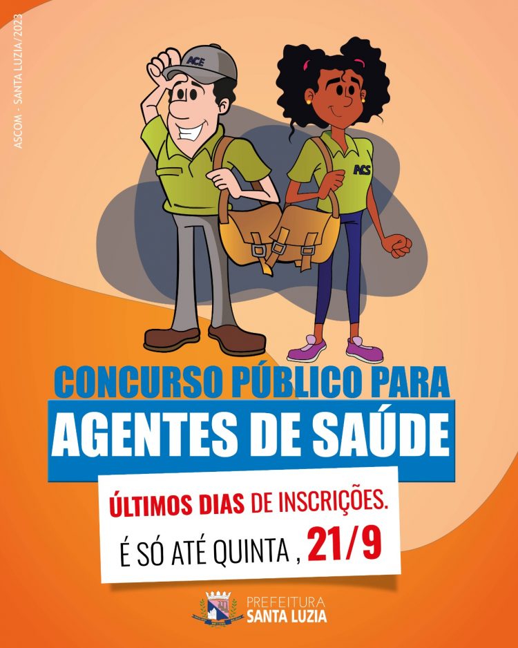 Terminam na próxima quinta-feira (21) as inscrições para o concurso público para os cargos de Agente Comunitário de Saúde (ACS) e Agente de Combate às Endemias (ACE), vinculados à Secretaria Municipal de Saúde. No total, serão disponibilizadas 135 vagas, sendo 95 para ACS e 40 para ACE.