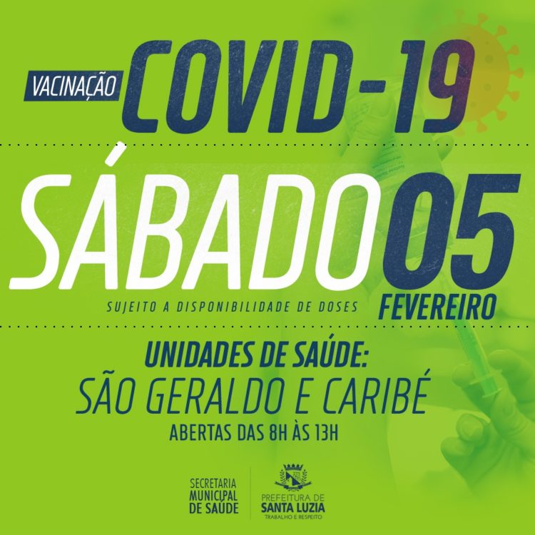 Para garantir que toda população tenha acesso à vacinação contra a covid-19, a Prefeitura abre as unidades básicas de saúde Caribé e São Geraldo todos os sábados das 8h às 13h.
