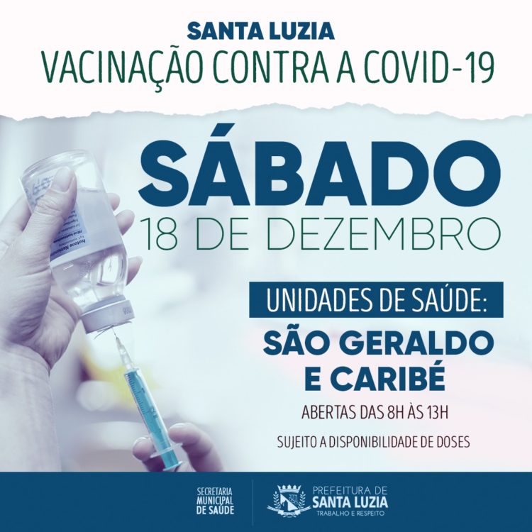 Quem ainda não completou o esquema vacinal contra a covid-19, e tem dificuldade para acessar as unidades básicas de saúde de segunda a sexta-feira poderá ir até as UBS’s Caribé e São Geraldo neste sábado (18), das 8h às 13h.