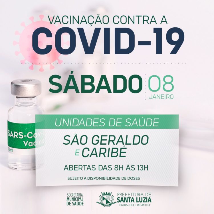 Vacinação contra a covid-19 neste sábado, nas unidades de saúde Caribé e São Geraldo