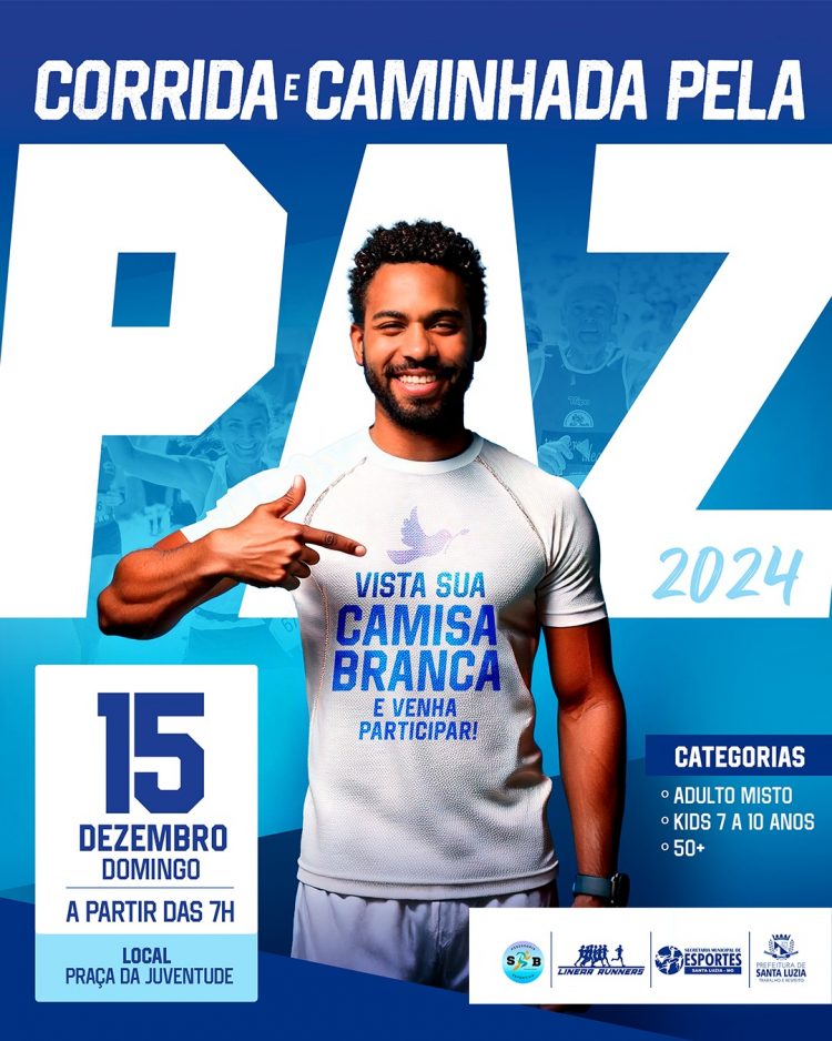 A Prefeitura de Santa Luzia, por meio da Secretaria Municipal de Esporte e Lazer, abrirá hoje, segunda-feira (9), às 16h, as inscrições para a Corrida e Caminhada pela Paz Santa Luzia 2024!