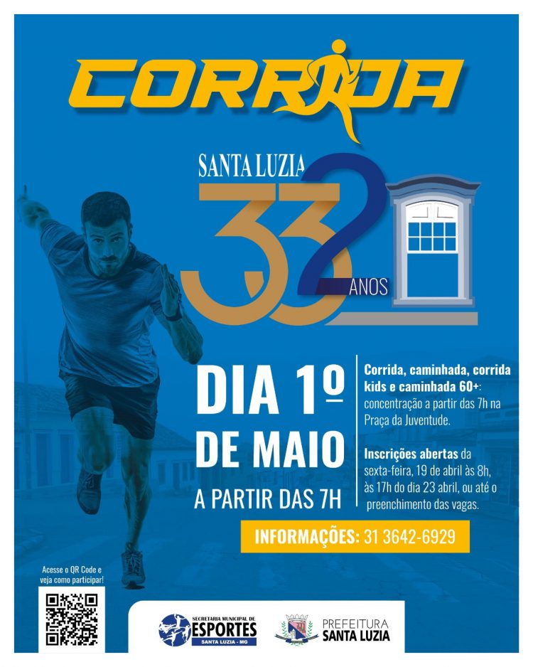 Em celebração aos 332 anos da cidade e ao Dia do Trabalho, a Prefeitura, por meio da Secretaria Municipal de Esportes e Lazer, realizará um evento que inclui corrida, caminhada, corrida kids e corrida/caminhada para a melhor idade. O evento ocorrerá no dia 1º de maio, a partir das 7h da manhã, na Praça da Juventude.