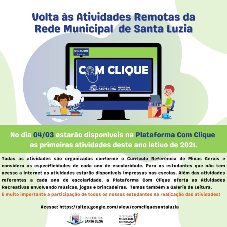 Volta às Atividades Remotas da Rede Municipal de Santa Luzia