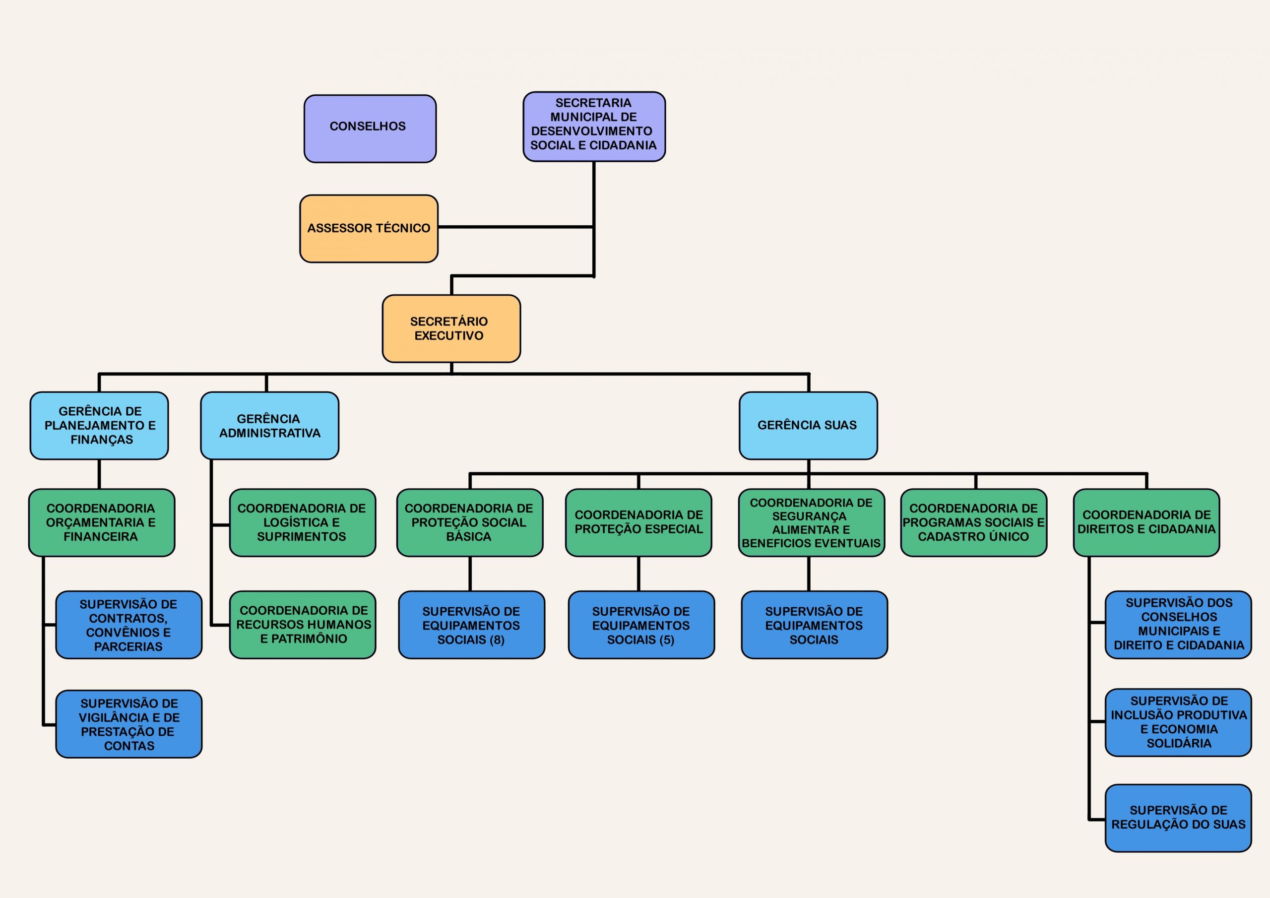 Selecione a imagem do organograma para obter as informações das competências das unidades acima listadas.
