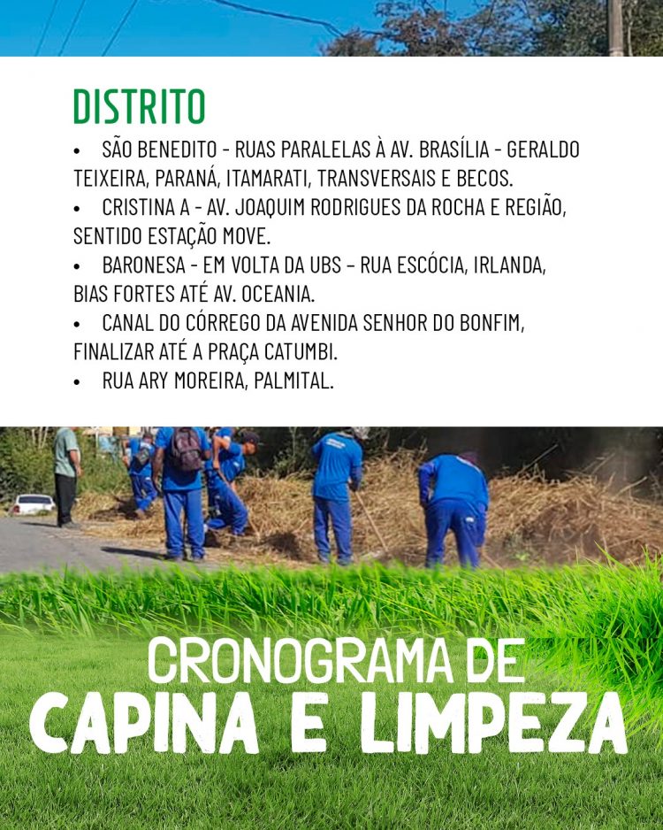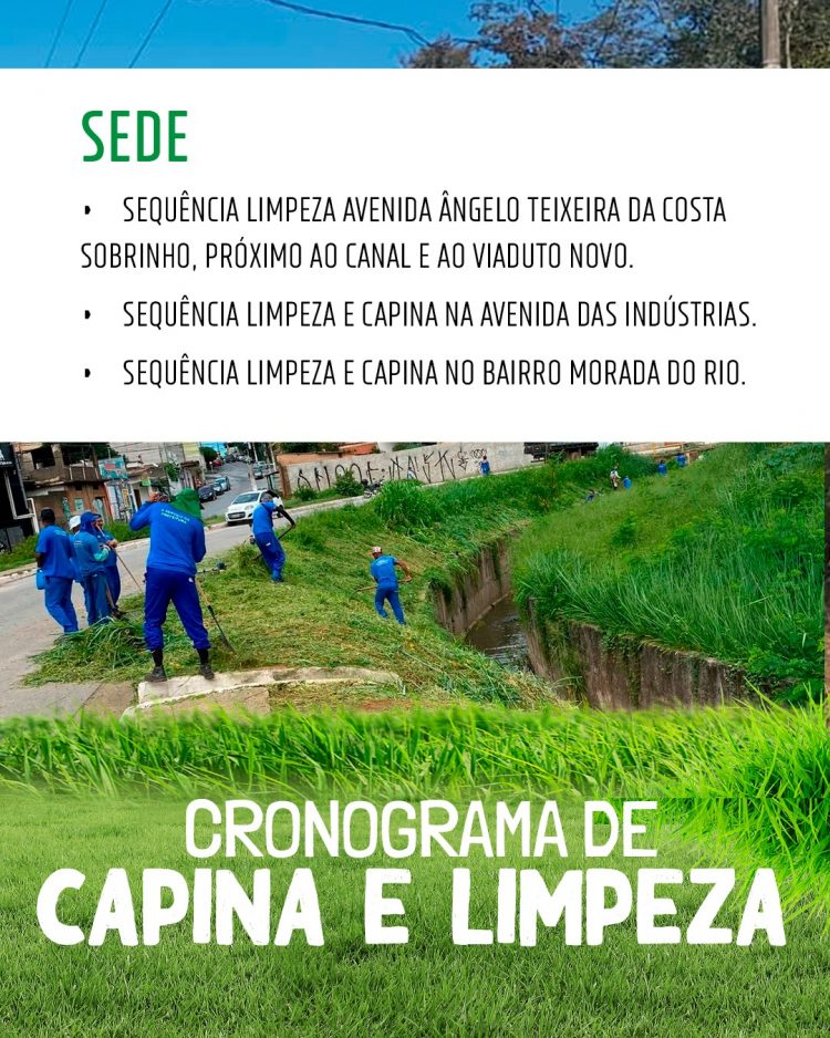O cronograma de serviços de capina e limpeza nos bairros da cidade segue intenso em Santa Luzia. Apesar do período chuvoso, a Prefeitura está intensificando os serviços, tanto na região da Sede, quanto do Distrito. Nesta segunda-feira (5), equipes estão dedicadas à limpeza em pontos como a Avenida Ângelo Teixeira da Costa Sobrinho e as ruas paralelas à Avenida Brasília, como a rua Geraldo Teixeira da Costa, rua Itamarati, rua Paraná, entre outras.