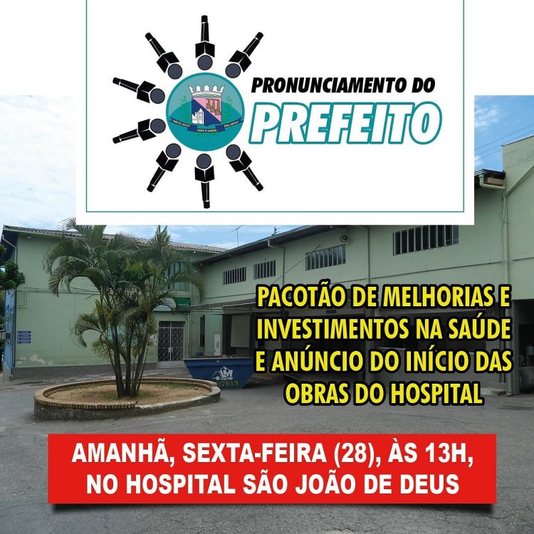 Atendendo aos anseios da população, na oportunidade o chefe do executivo municipal também anunciará o início das obras do Hospital São João de Deus.